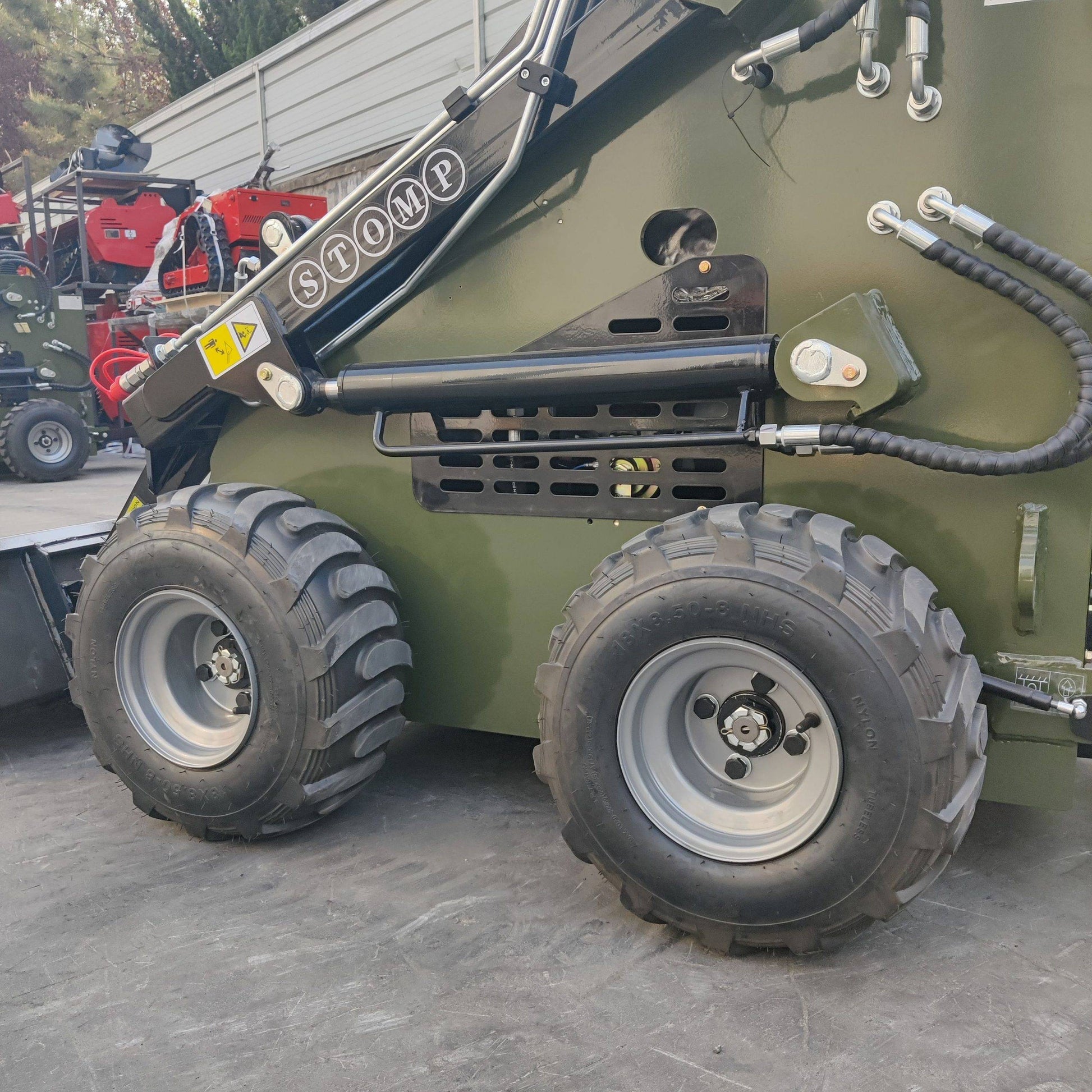Coupled with a superb 22.1hp 4 stroke OHV Honda petrol engine, 90 degrees V-twin design, horizontal shaft, this STOMP machine comes with three hydraulic valves that allow the machine to operate all the mini skid steer attachments.